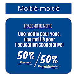 Avec le tirage moitié-moitié, vous gagnez doublement : 50 % de la cagnotte peut vous revenir et l’autre moitié est investie dans la relève coopérative et mutualiste. Un geste simple, accessible et à fort impact!